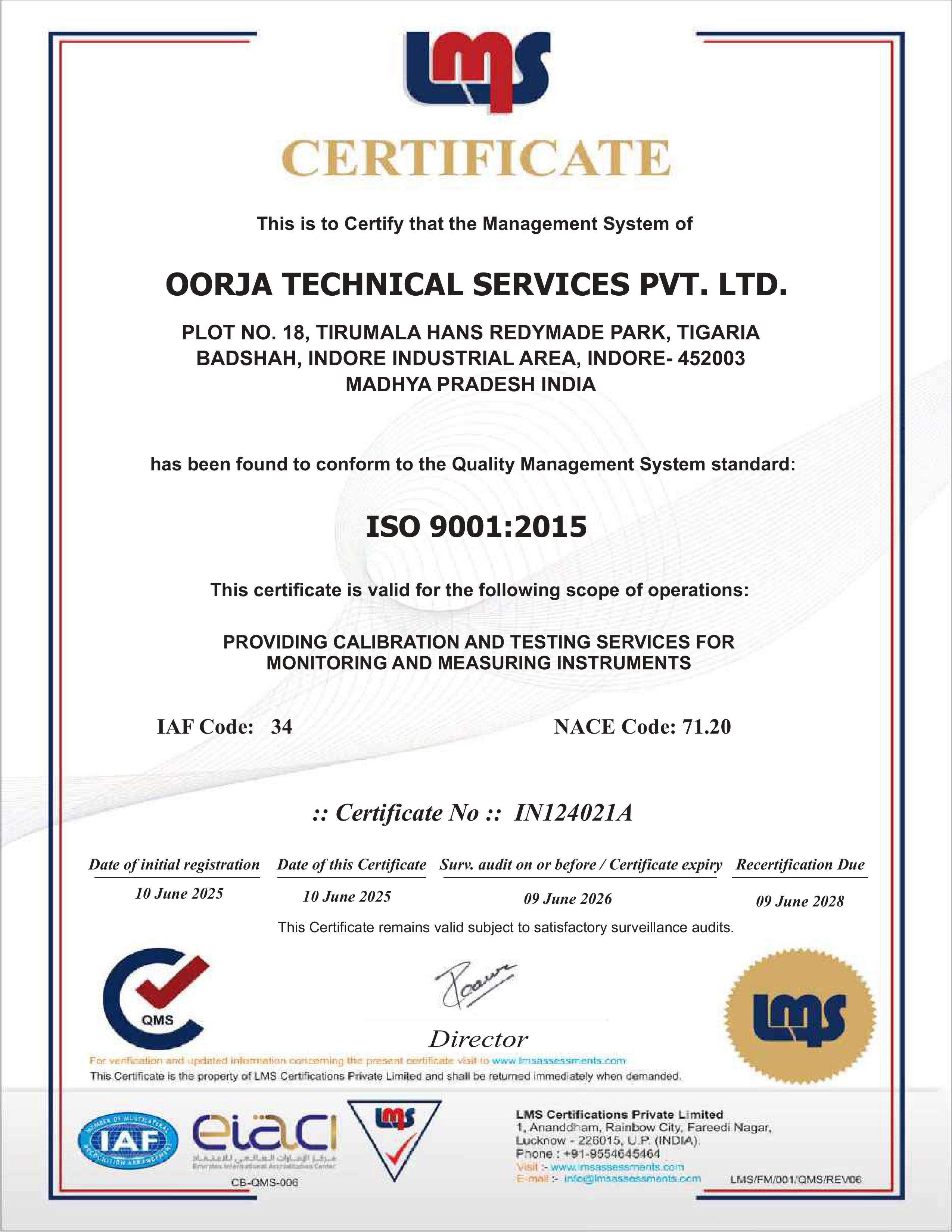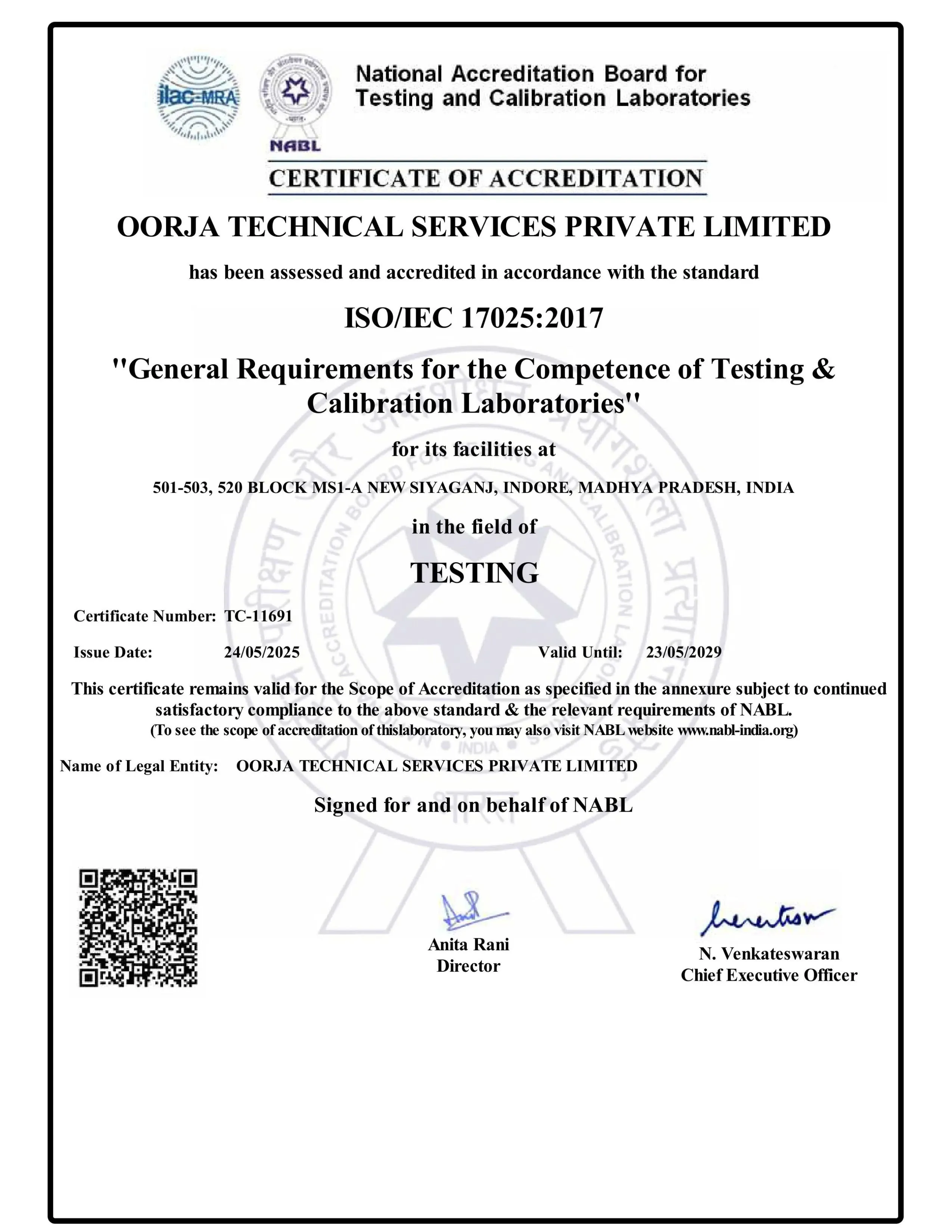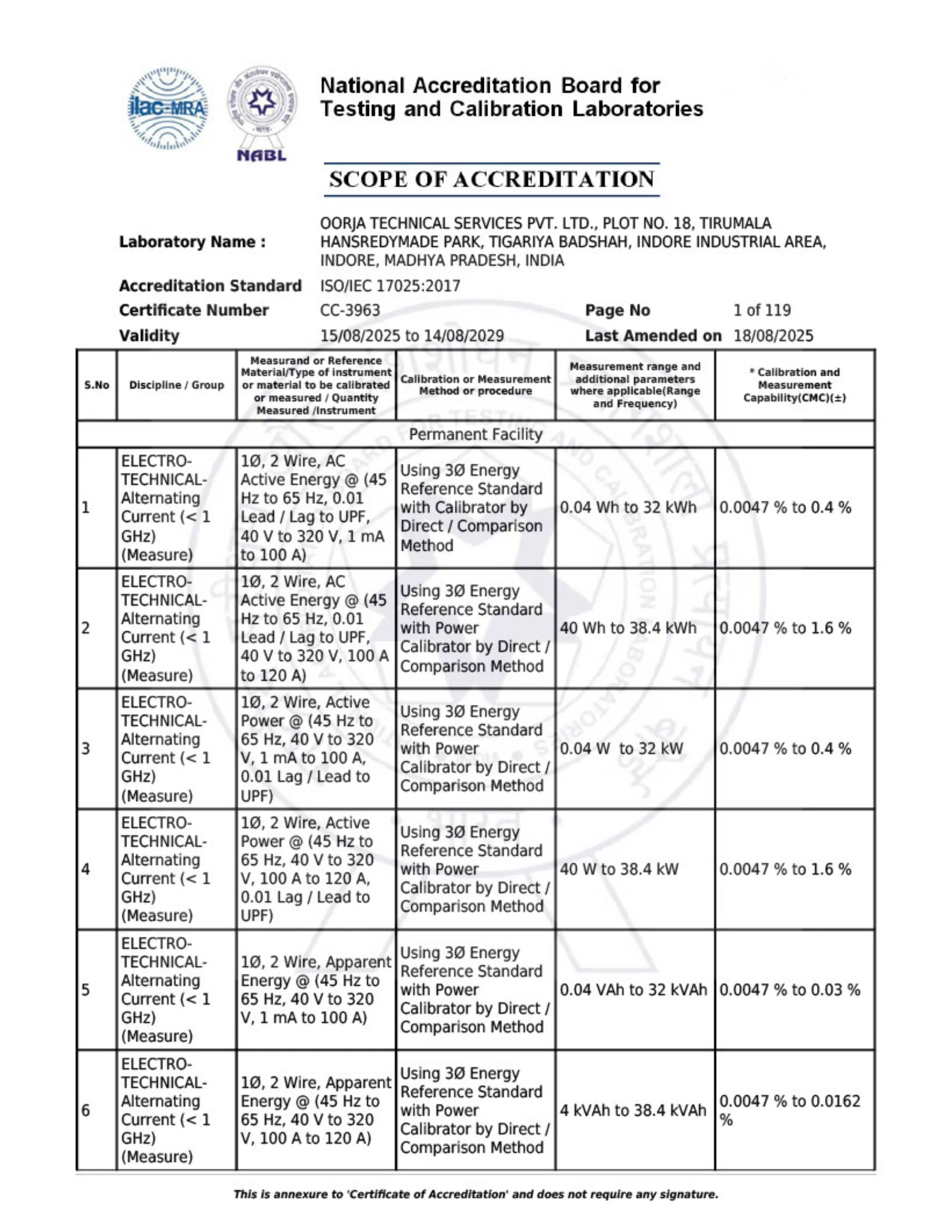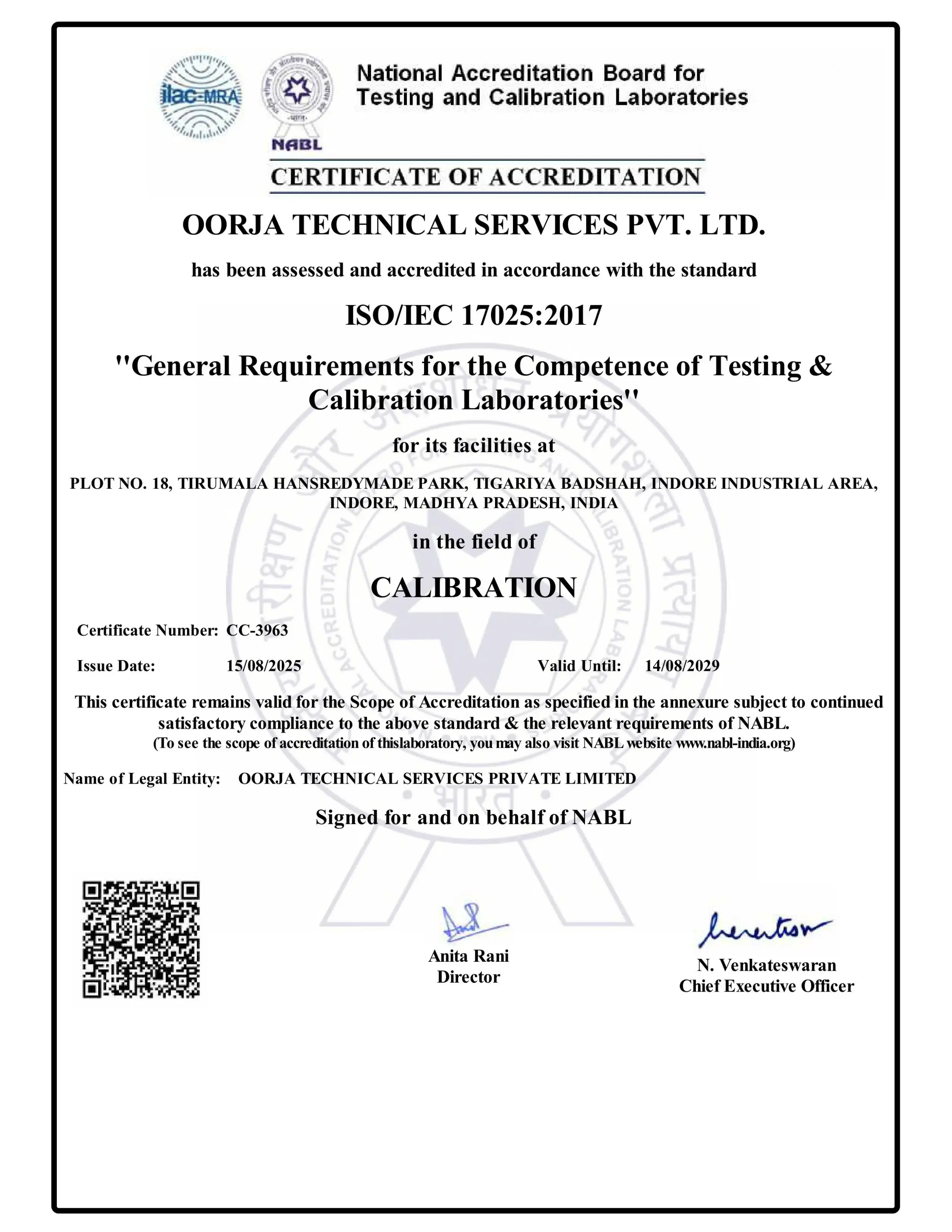 We are ISO/IEC: 17025:2017 accredited laboratory by NABL (National Accreditation Board for Testing and Calibration Laboratories). This accreditation demonstrates our technical competence and ensures that our calibration results are internationally recognized and accepted by regulatory bodies.