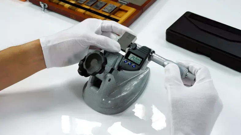 Calibration of dimensional measuring instruments, ensuring conformity with standards.